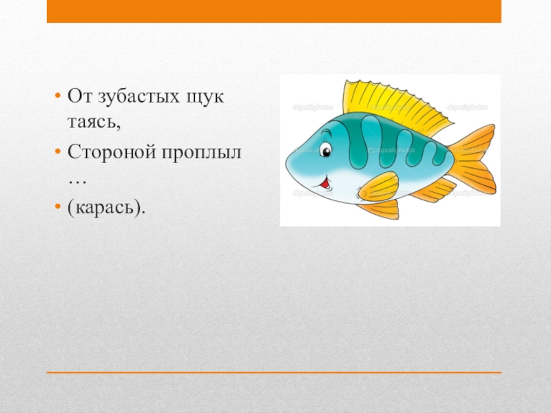 От зубастых щук таясь,Стороной проплыл …(карась).