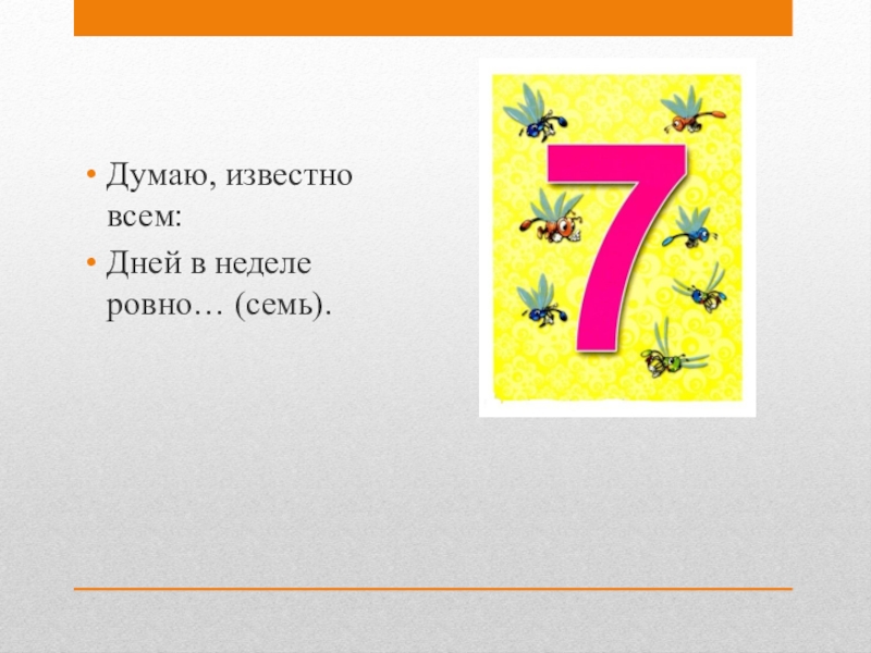 Думаю, известно всем:Дней в неделе ровно… (семь).