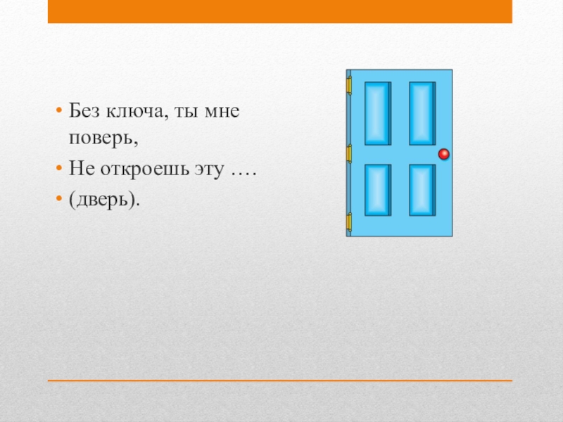 Без ключа, ты мне поверь,Не откроешь эту ….(дверь).