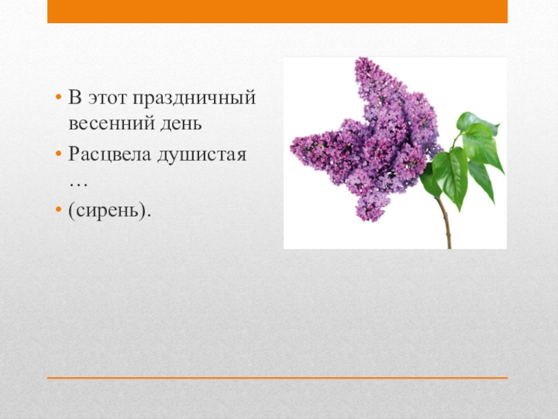 В этот праздничный весенний деньРасцвела душистая …(сирень).