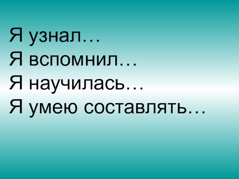 Я узнал…Я вспомнил…Я научилась…Я умею составлять…