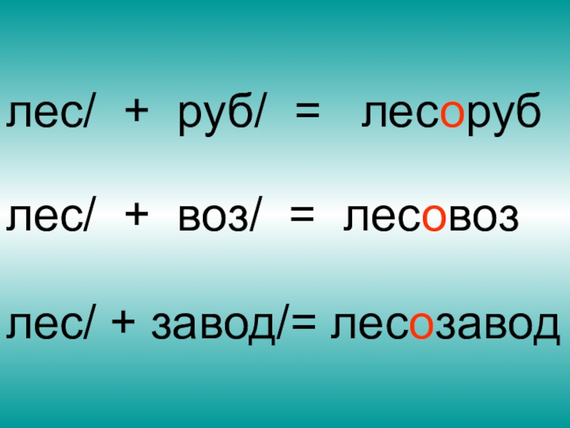 лес/ + руб/ =  лесорублес/ + воз/ = лесовозлес/ + завод/= лесозавод