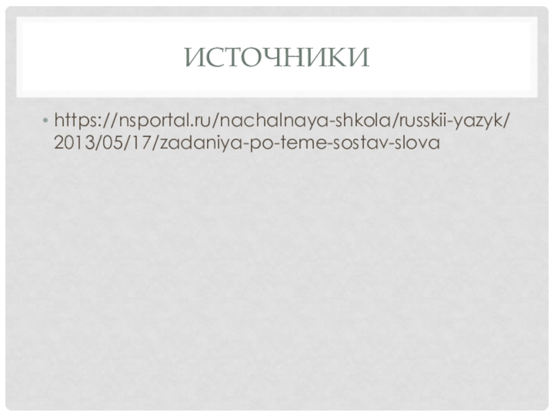 источникиhttps://nsportal.ru/nachalnaya-shkola/russkii-yazyk/2013/05/17/zadaniya-po-teme-sostav-slova