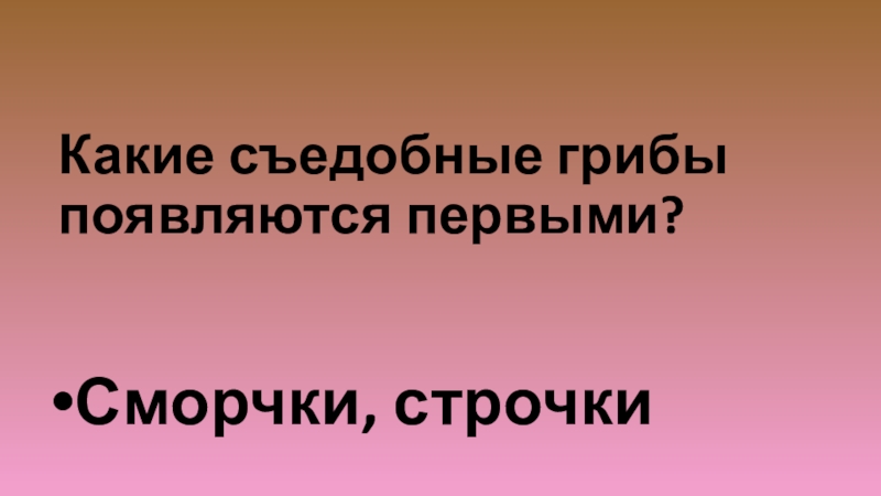 Слайд 8 Какие съедобные грибы появляются первыми?