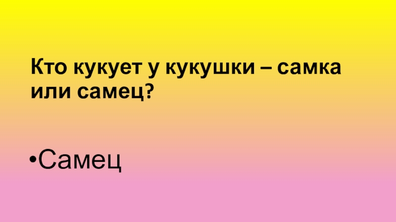Слайд 2Кто кукует у кукушки – самка или самец?