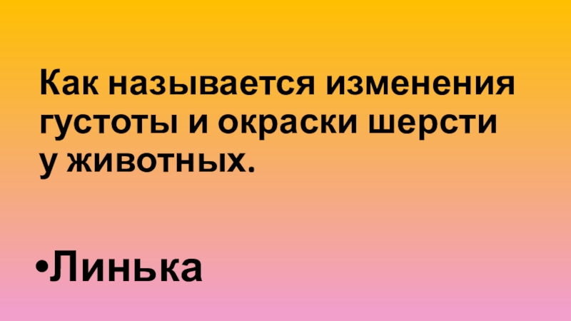 Слайд 4Как называется изменения густоты и окраски шерсти у животных.