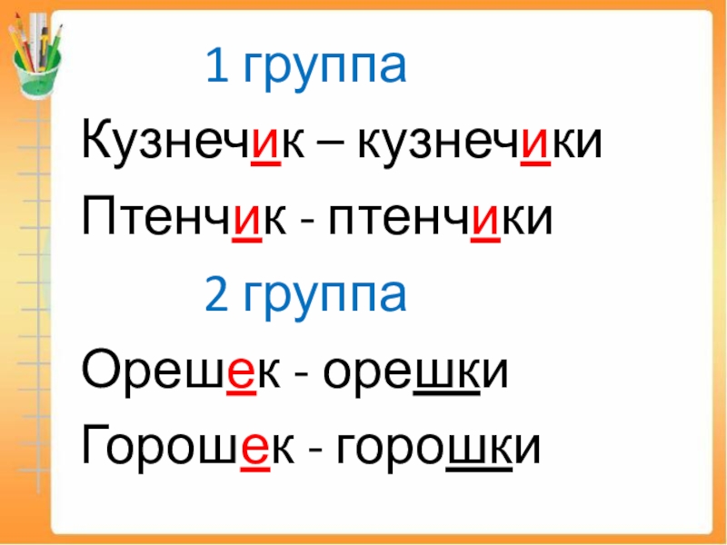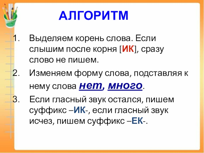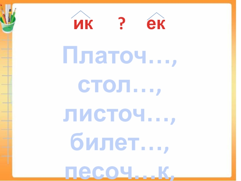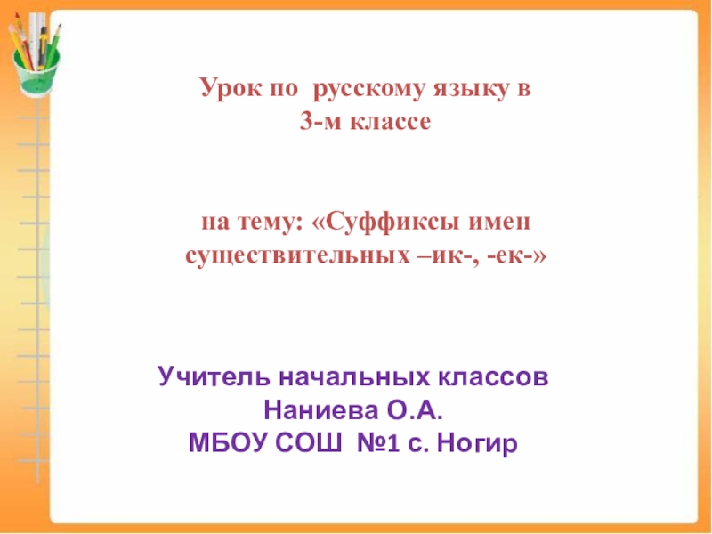 на тему: «Суффиксы имен существительных –ик-, -ек-»