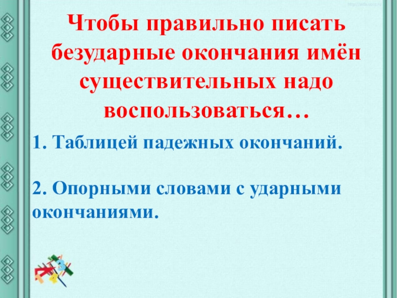 2. Опорными словами с ударными окончаниями.