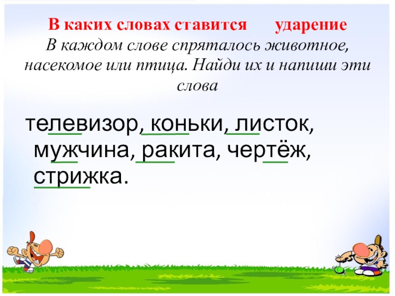 телевизор, коньки, листок, мужчина, ракита, чертёж, стрижка.