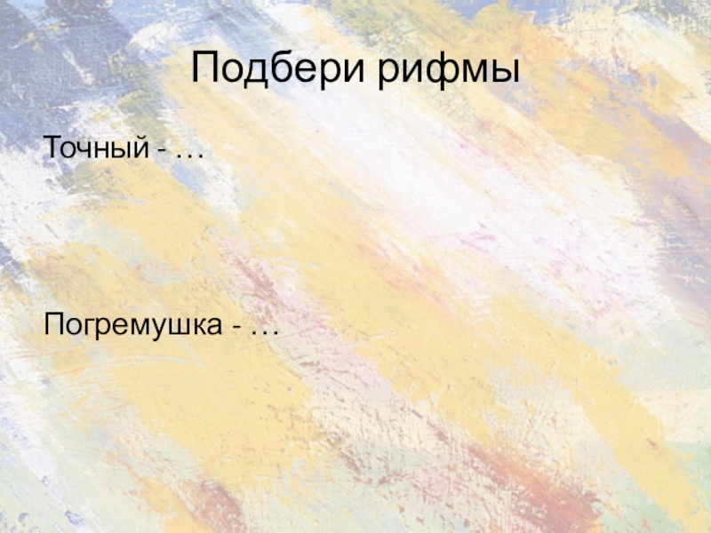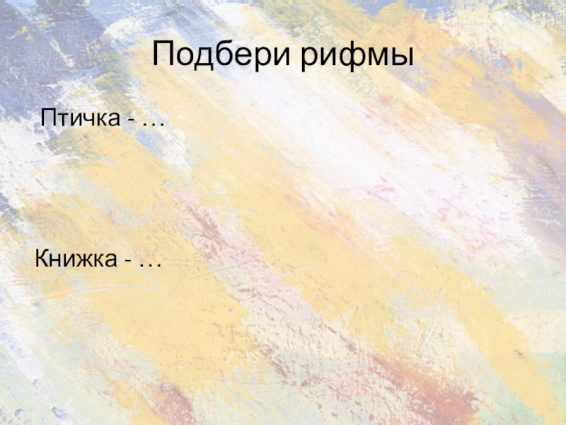 - Этого мало, - сказал Цветик. - Надо, чтобы слова были похожи, так чтобы получалось складно: палка - галка, печка - свечка
