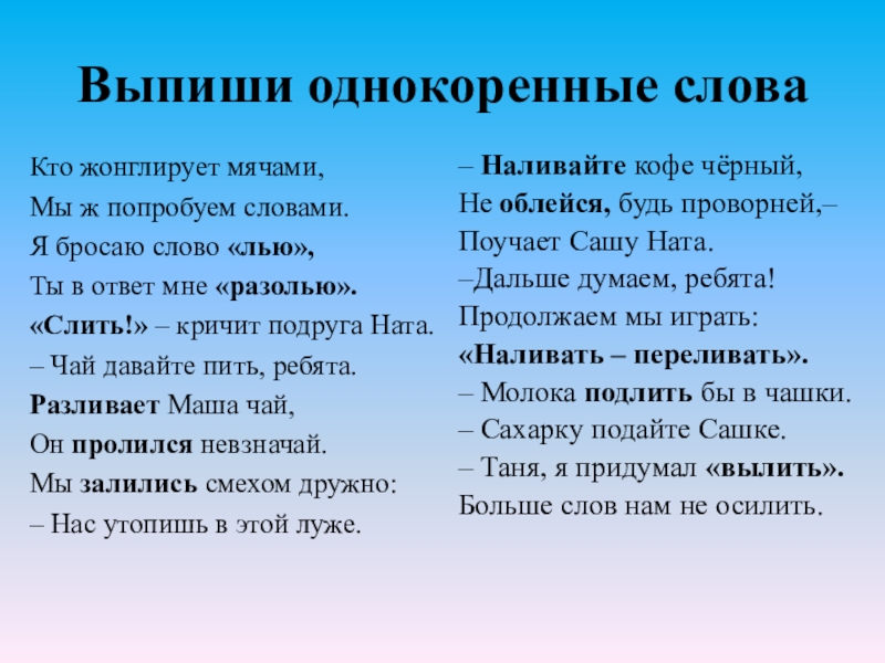– Таня, я придумал «вылить».
