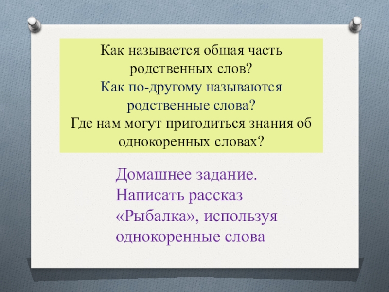 Написать рассказ «Рыбалка», используя однокоренные слова