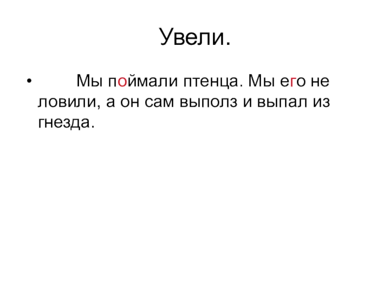 Увели.    Мы поймали птенца. Мы его не ловили, а он сам выполз и выпал