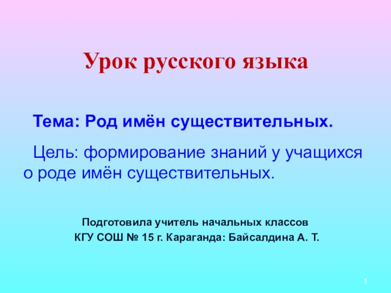КГУ СОШ № 15 г. Караганда: Байсалдина А. Т.