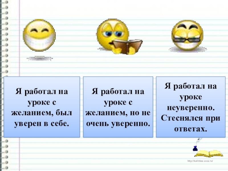 Я работал на уроке неуверенно. Стеснялся при ответах.