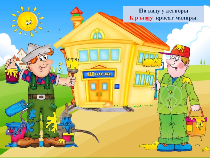 Слайд 7На виду у детворы К р ы с у красят маляры.
