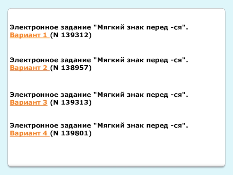 Электронное задание "Мягкий знак перед -ся". Вариант 4 (N 139801)