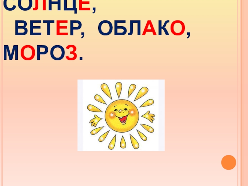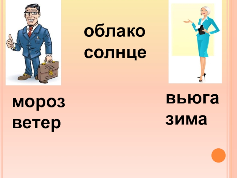 Слайд 2 ВЬЮГА, ЗИМА, СОЛНЦЕ, ВЕТЕР, ОБЛАКО, МОРОЗ.