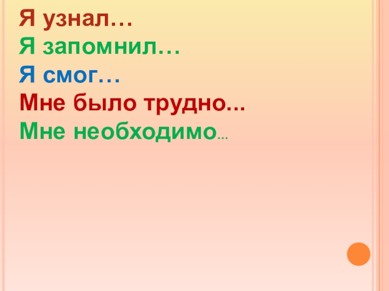 Я узнал…Я запомнил…Я смог…Мне было трудно...Мне необходимо...