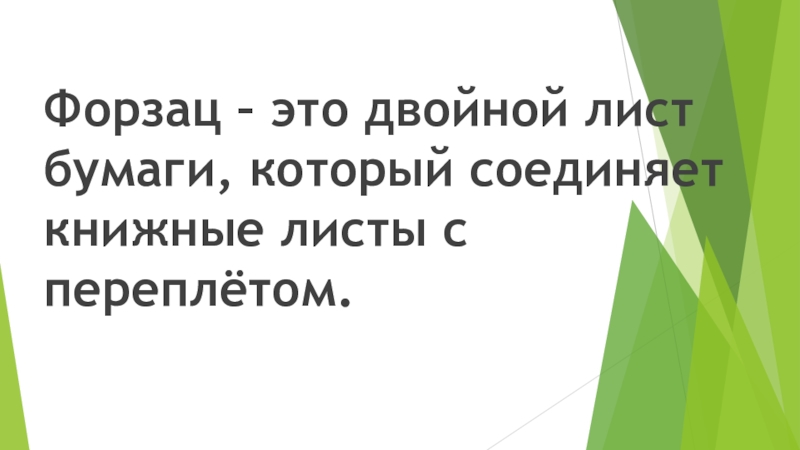 Слайд 7Форзац – это двойной лист бумаги, который соединяет книжные листы с