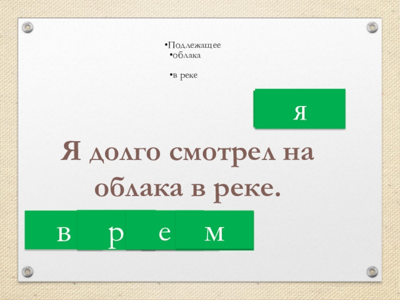 Слайд 7Я долго смотрел на облака в реке.