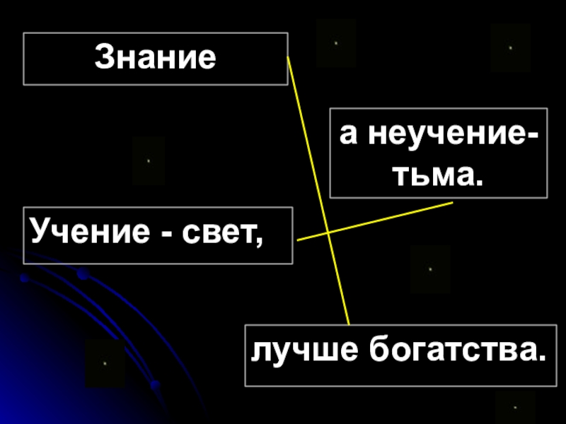 Знаниеа неучение-тьма.лучше богатства.Учение - свет,