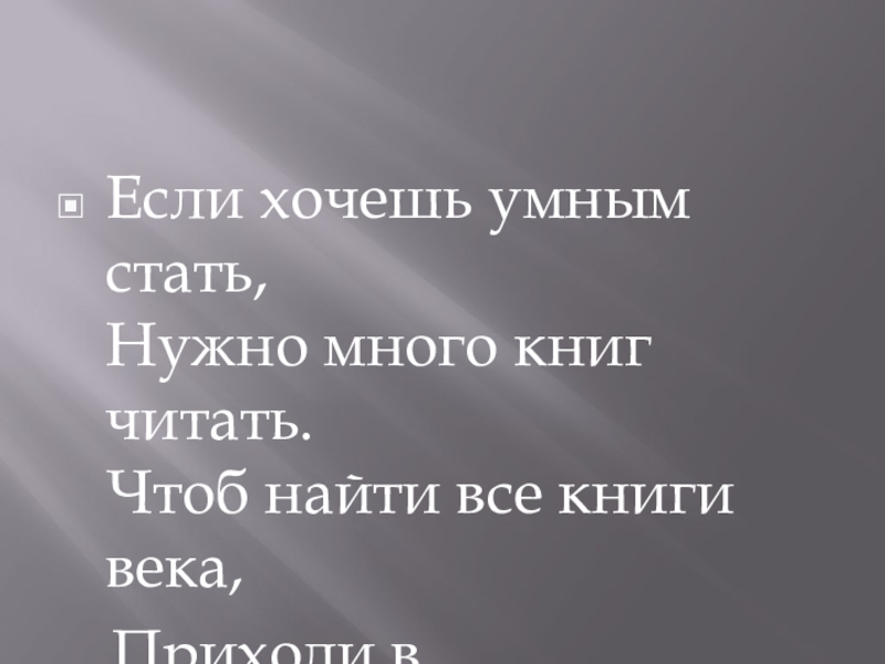 Слайд 4Если хочешь умным стать, Нужно много книг читать. Чтоб найти все книги века,
