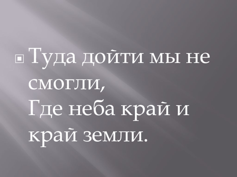 Слайд 8Туда дойти мы не смогли, Где неба край и край земли.