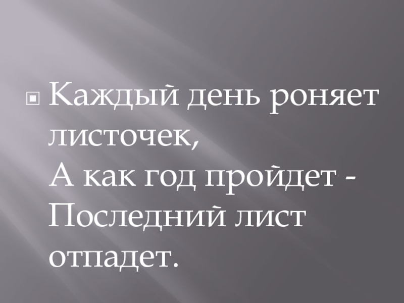 Каждый день роняет листочек, А как год пройдет - Последний лист отпадет.