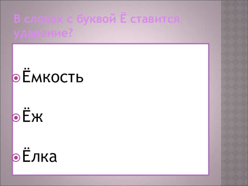 В словах с буквой Ё ставится ударение?ЁмкостьЁжЁлка