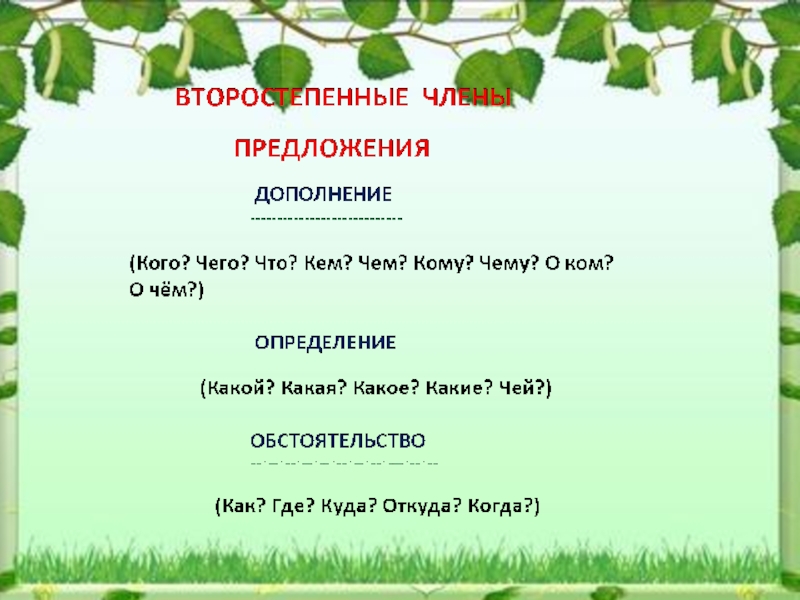 Презентация, доклад по русскому языку на тему Главные и второстепенные члены предложения (4 класс)