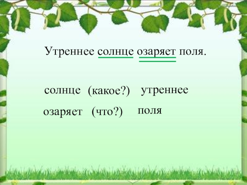 Утреннее солнце озаряет поля.солнце (какое?)утреннееозаряет(что?)поля