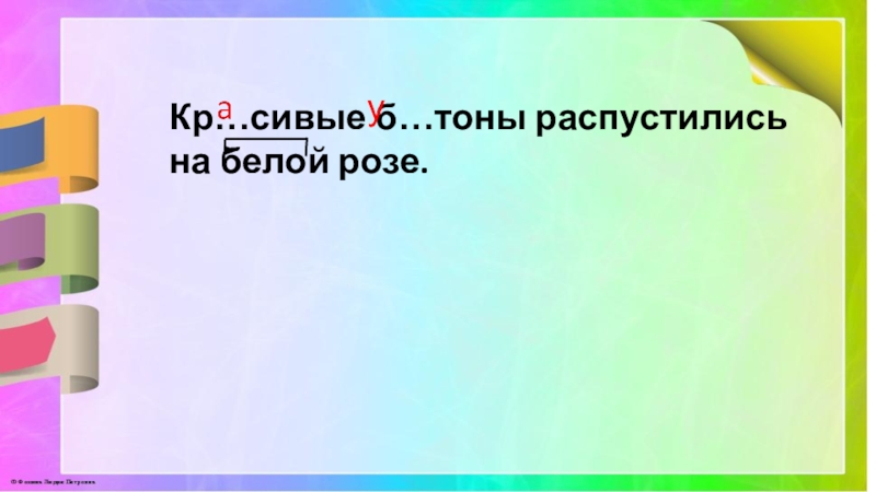 Слайд 4Кр…сивые б…тоны распустились на белой розе.