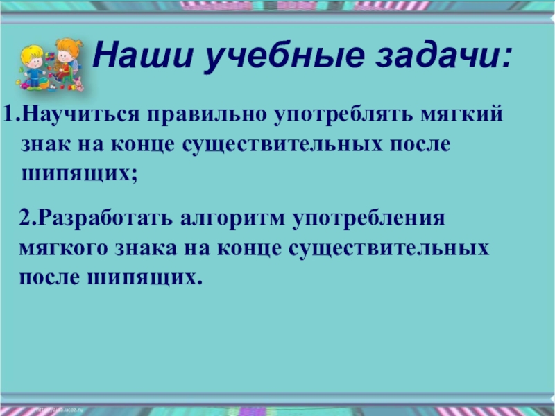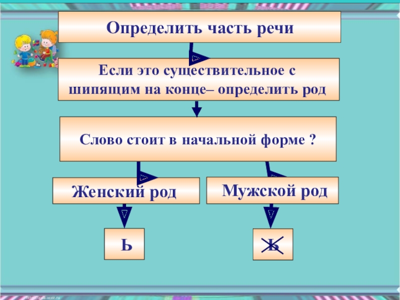 2.Разработать алгоритм употребления мягкого знака на конце существительных после шипящих.