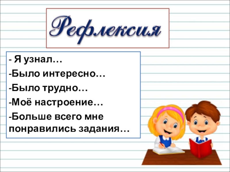 - Я узнал…-Было интересно…-Было трудно…-Моё настроение…-Больше всего мне понравились задания…