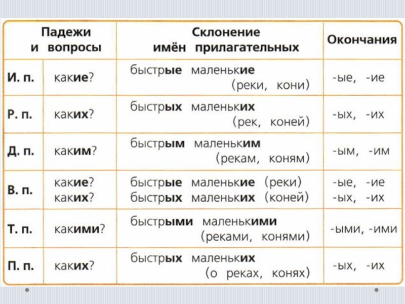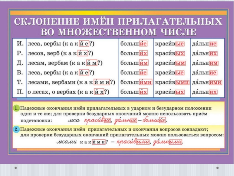 Презентация, доклад по русскому языку на тему Склонение имён прилагательных во множественном числе 4 класс