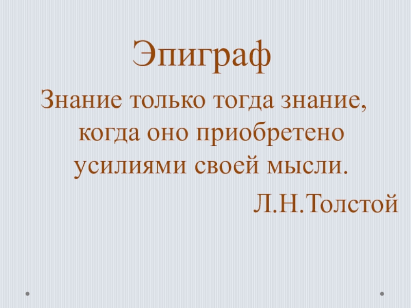 Эпиграф Знание только тогда знание, когда оно приобретено усилиями своей мысли.Л.Н.Толстой