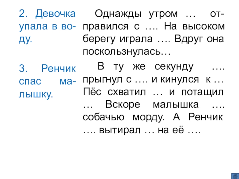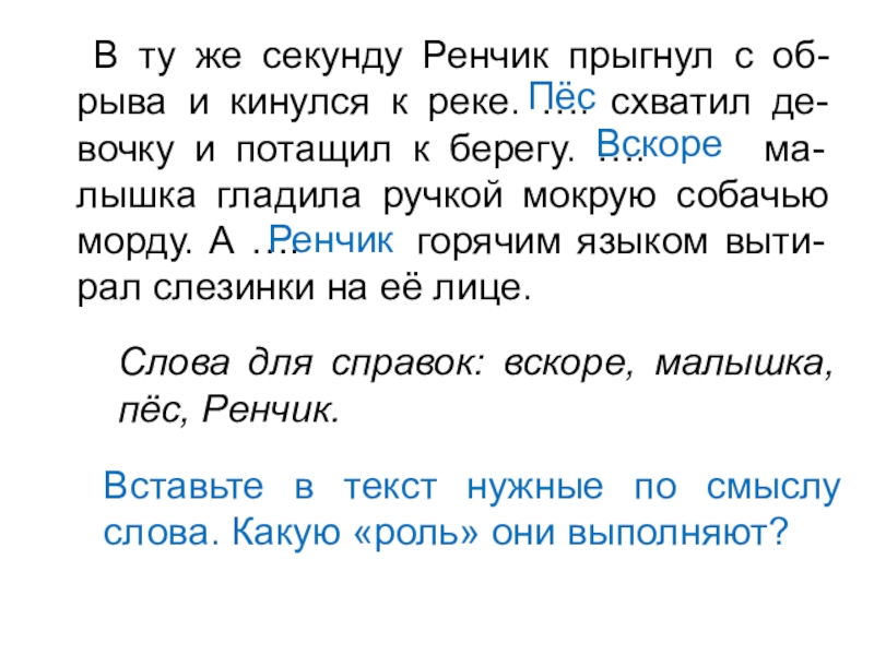 Слова для справок: вскоре, малышка, пёс, Ренчик.