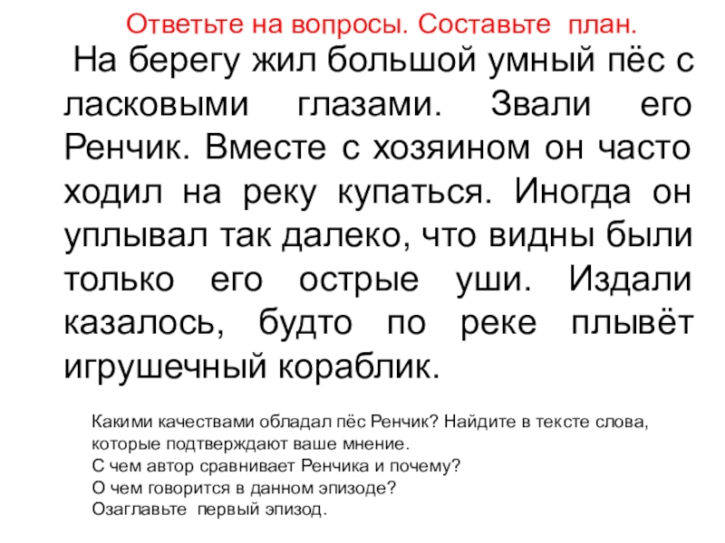 Какими качествами обладал пёс Ренчик? Найдите в тексте слова, которые подтверждают ваше мнение.