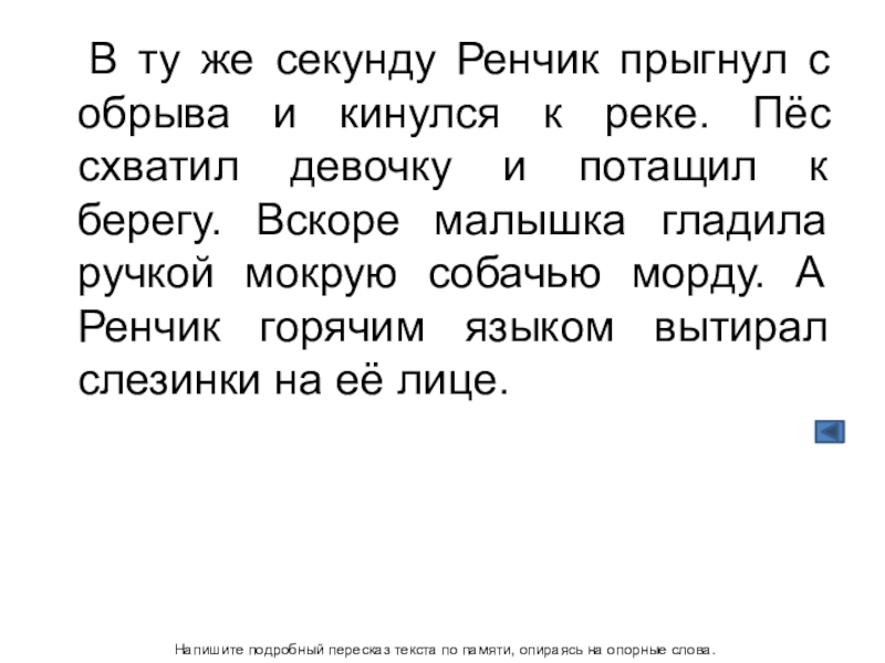 Напишите подробный пересказ текста по памяти, опираясь на опорные слова.