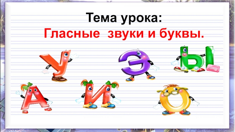 Тема урока: Гласные звуки и буквы.