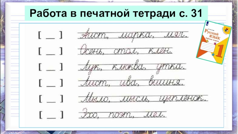 Слайд 6Работа в печатной тетради с. 31