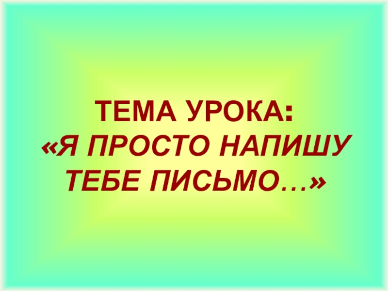 Слайд 1ТЕМА УРОКА: «Я ПРОСТО НАПИШУ ТЕБЕ ПИСЬМО…»