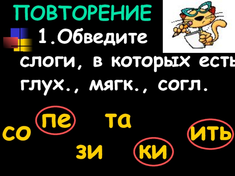 ПОВТОРЕНИЕ 1.Обведите   слоги, в которых есть   глух., мягк., согл.сотакизипеить