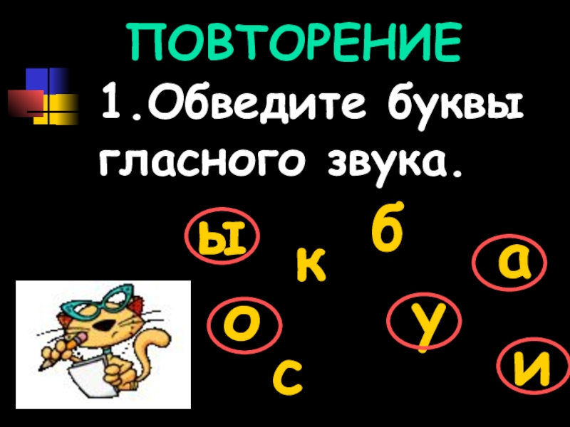 ПОВТОРЕНИЕ1.Обведите буквы гласного звука.ыкаубсио