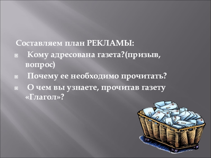 Это сайт презентаций, где можно хранить и обмениваться своими презентациями, докладами, проектами, шаблонами в формате PowerPoint с другими пользователями. Мы помогаем школьникам, студентам, учителям, преподавателям хранить и обмениваться учебными материалами.