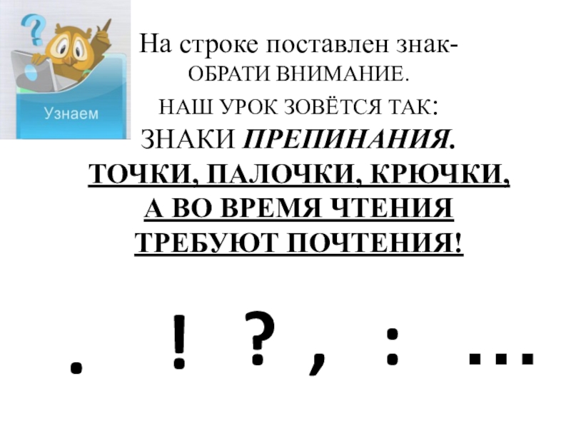 Презентация, доклад по русскому языку на тему Знаки препинания в конце предложений