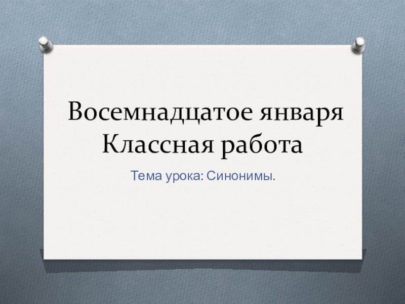 Восемнадцатое января Классная работаТема урока: Синонимы.
