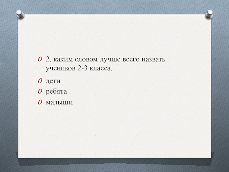 2. каким словом лучше всего назвать учеников 2-3 класса.детиребятамалыши