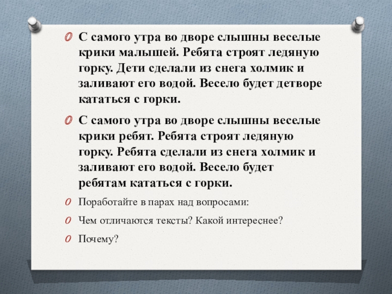 Чем отличаются тексты? Какой интереснее?